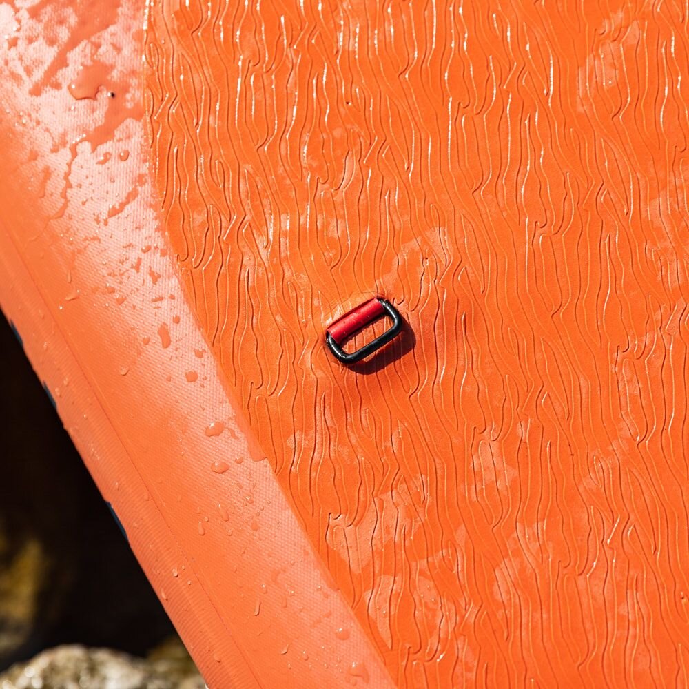 Na palubě paddleboardu se nachází lisovaný neklouzavý pad s unikátním vzorem písečné pláže, středové madlo a D-ringy pro uchycení kajakové sedačky. Novinkou je také systém uchycení osobních věcí na přídi pomocí plochých gumiček RED STRAP™, které jsou poskládány v novém tvaru na větší ploše, což nejen skvěle vypadá, ale je také velmi funkční.