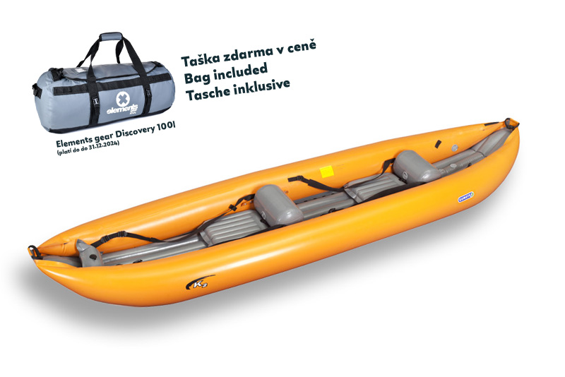 Popis: Gumotex K2 je stabilní nafukovací kajak s mnohostranným využitím, ideální pro různé vodní aktivity. Tento kajak je designován pro použití na řekách do stupně obtížnosti WW4, což z něj činí vynikající volbu pro sjezdy divokých peřejí. Díky svému robustnímu a stabilnímu trupu je K2 ideální pro začínající kajakáře, kteří chtějí získat první zkušenosti na divoké vodě. Kajak K2 je rovněž skvělý pro expediční putování po řece a nabízí pohodlné nafukovací sedačky s dostatkem prostoru k sezení.