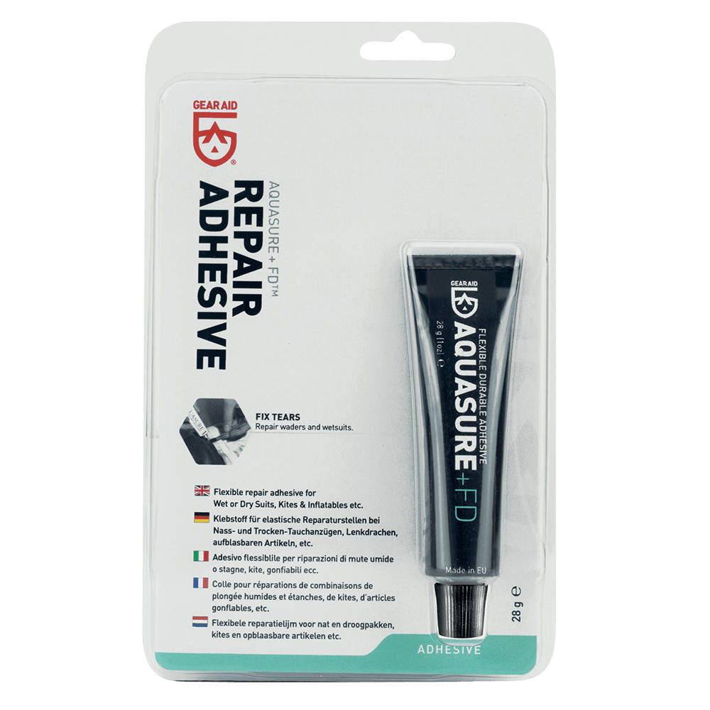 - AQUASURE Watersport (Wader) je lepidlo na bázi polyuretanu pro opravu neoprénu a středně těžkých zátěrovaných tkanin (Cordura a pod.)