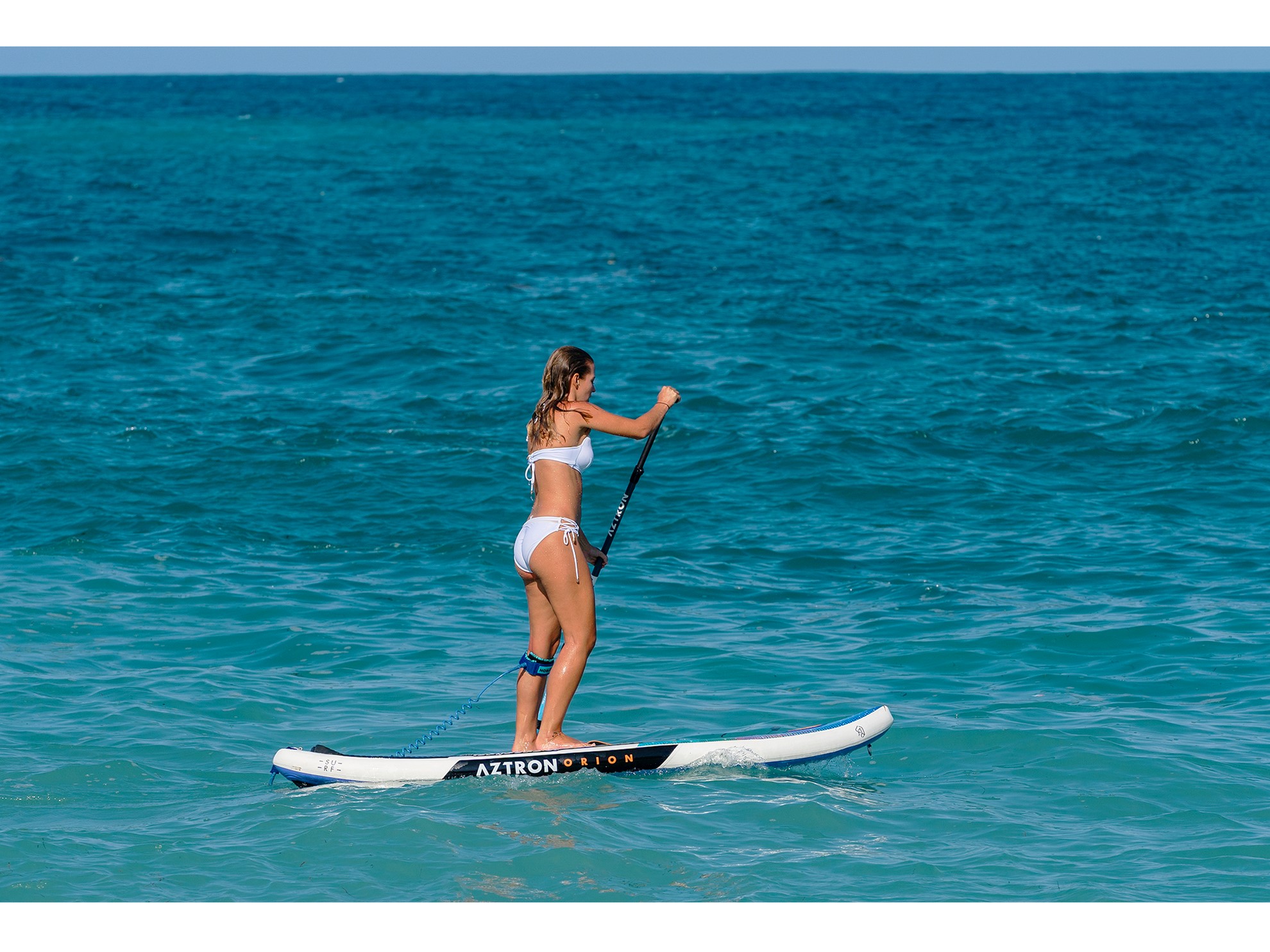 - Dvě komory pro extra bezpečí: Aztron Double Chamber konstrukce poskytuje až 60 litrů bezpečnostní rezervy a zvyšuje tuhost paddleboardu o 30 %.
