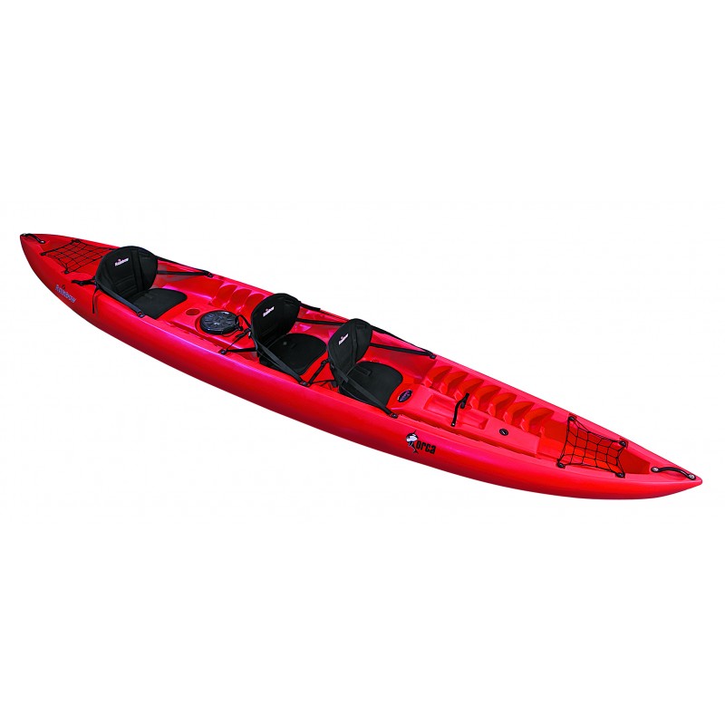 Až třímístný sit-on-top kajak Rainbow Orca expedition.