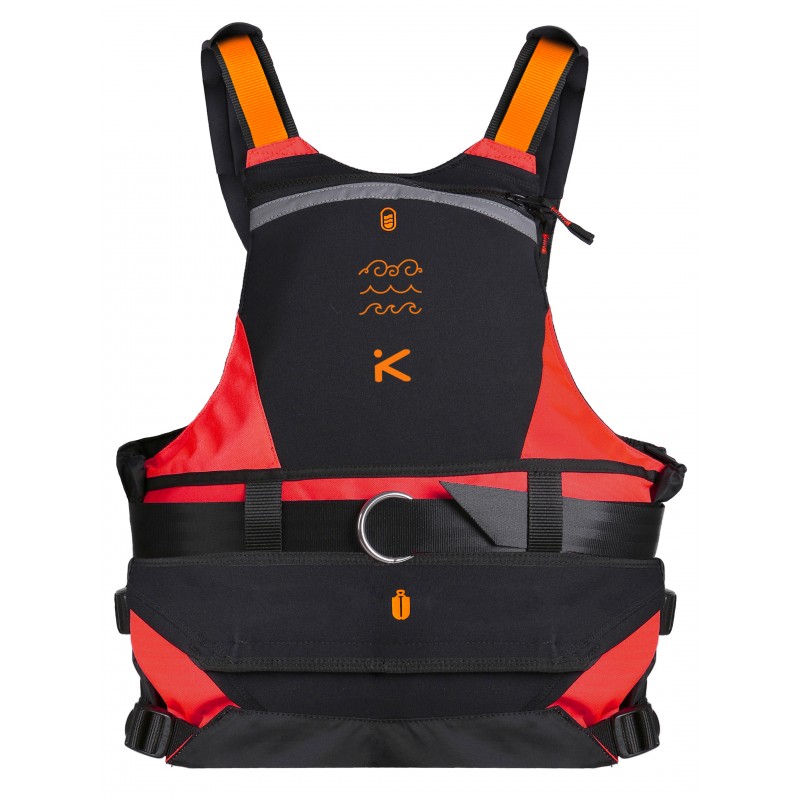 - Plně vybavená nízkoprofilová vesta s velkým výtlakem vhodná pro jízdu na kajaku na divoké vodě, na mořském kajaku nebo pro říční turistiku.